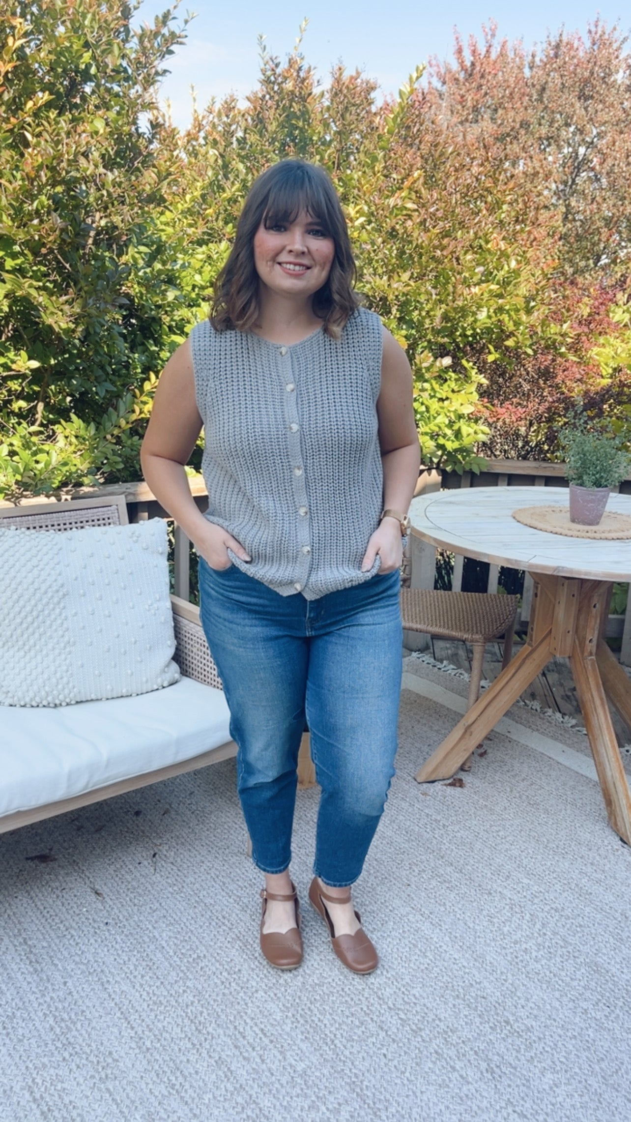 The Maeve vest carries the grace of something passed down, but made for now. Sturdy yet soft, her textured knit and delicate button-down front give her the feeling of a cardigan once worn in a grandmother’s kitchen — warm, present, wise. Pair her with a cotton dress or your favorite skirt and boots — she lends instant timelessness to every outfit, like the final line in a well-loved poem.