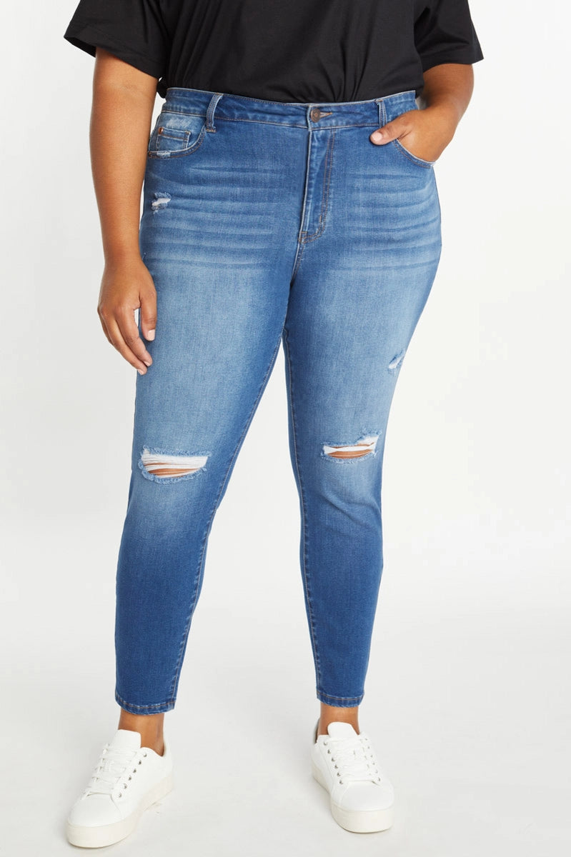 Plus High Rise Destructed Skinny Jean