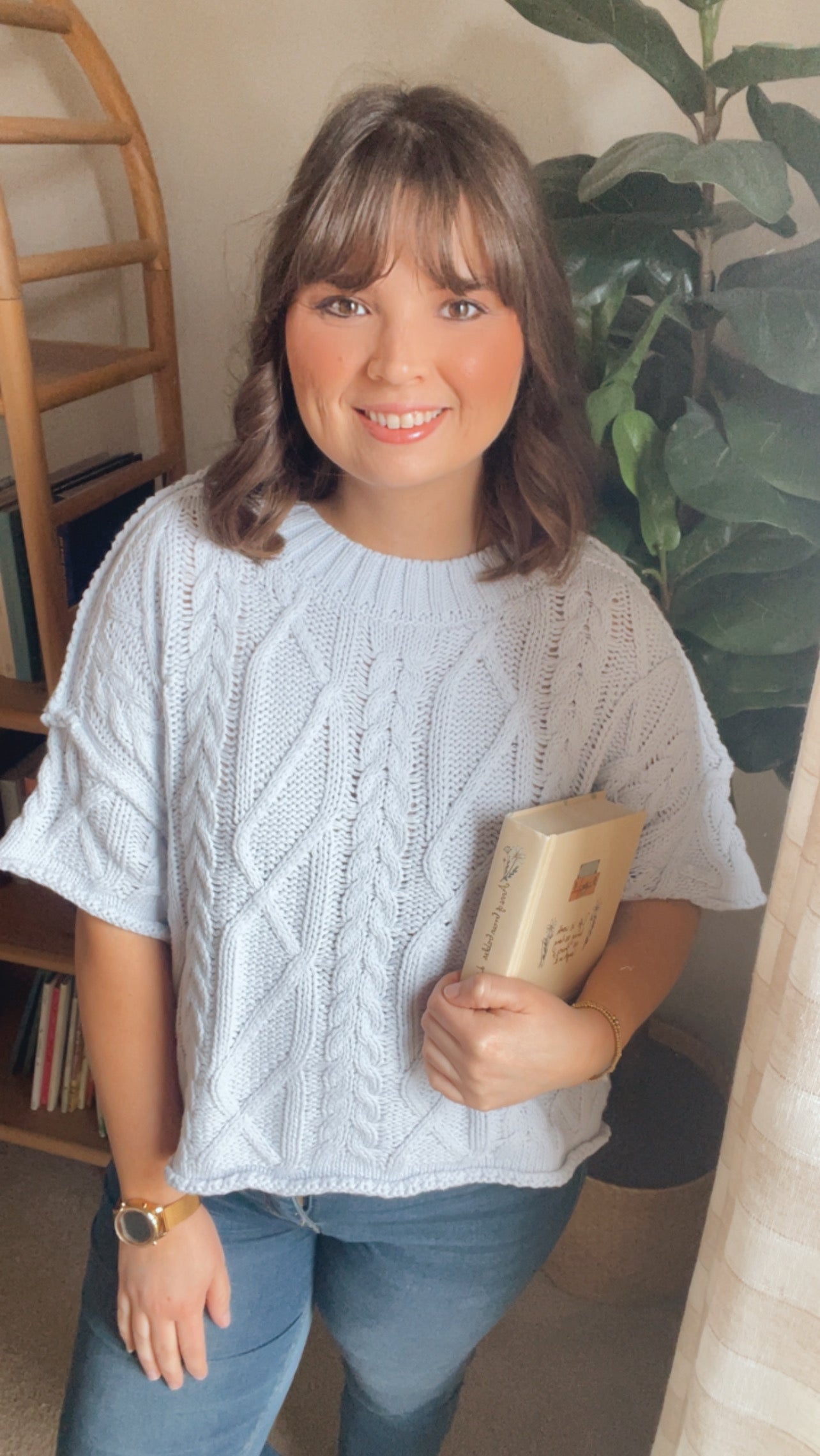 A timeless round neck short sleeve knit in a soft coastal blue hue. Designed with a flattering relaxed fit and classic cable knit texture, this pairs perfectly with denim, or white bottoms for effortless everyday style. A versatile boutique favorite for spring, summer nights, and year-round layering.