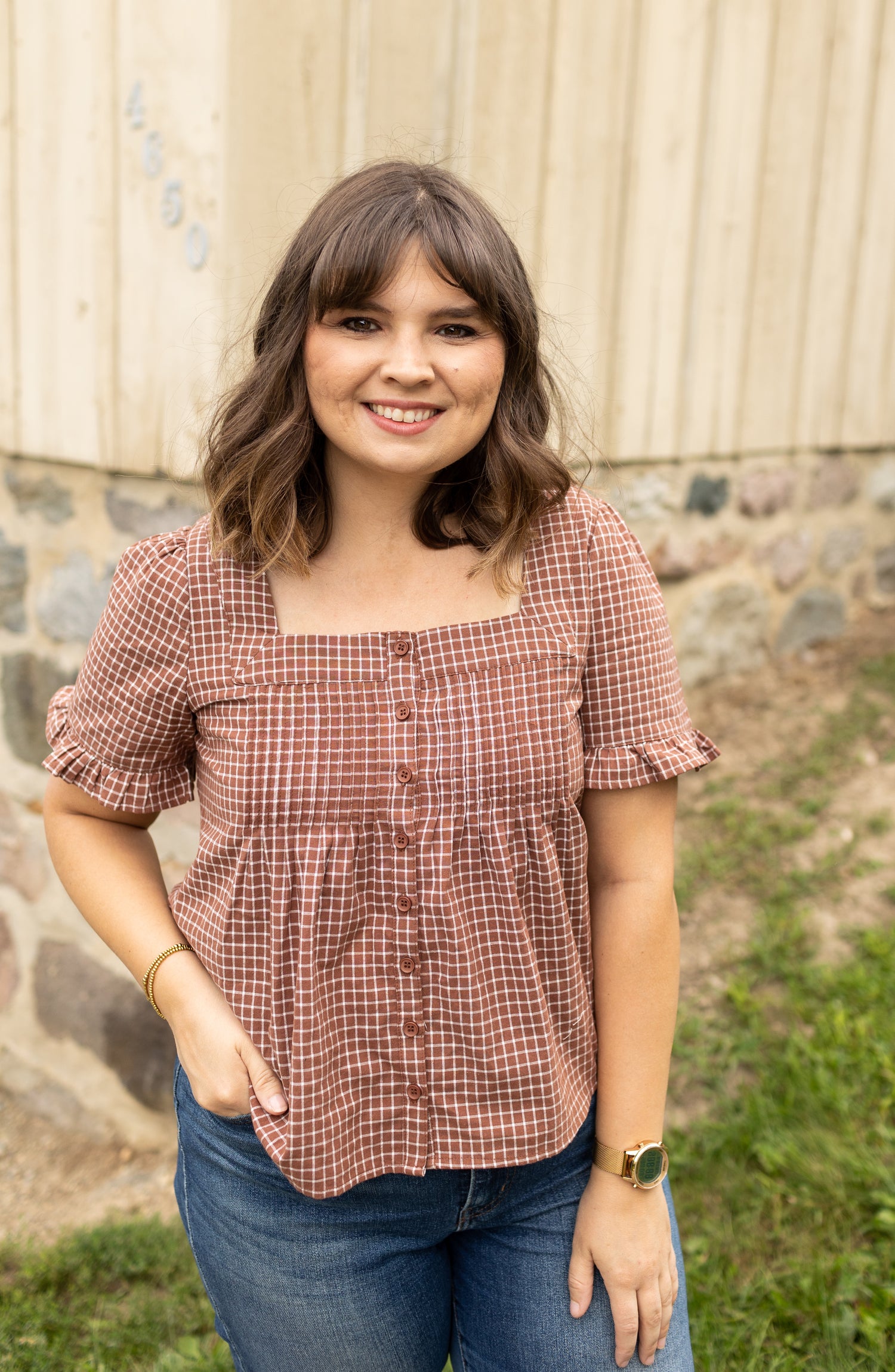 The Rowan Blouse is a timeless ode to autumn’s poetry. Made from soft, breathable cotton in a rustic brown-and-white check, this blouse blends everyday ease with a touch of countryside romance. Functional buttons line the front, offering styling versatility whether tucked into a flowing skirt or worn loose over your favorite denim. With its warm tones and thoughtful details, Rowan feels like an old letter rediscovered — full of quiet charm, ready to be lived in again and again.