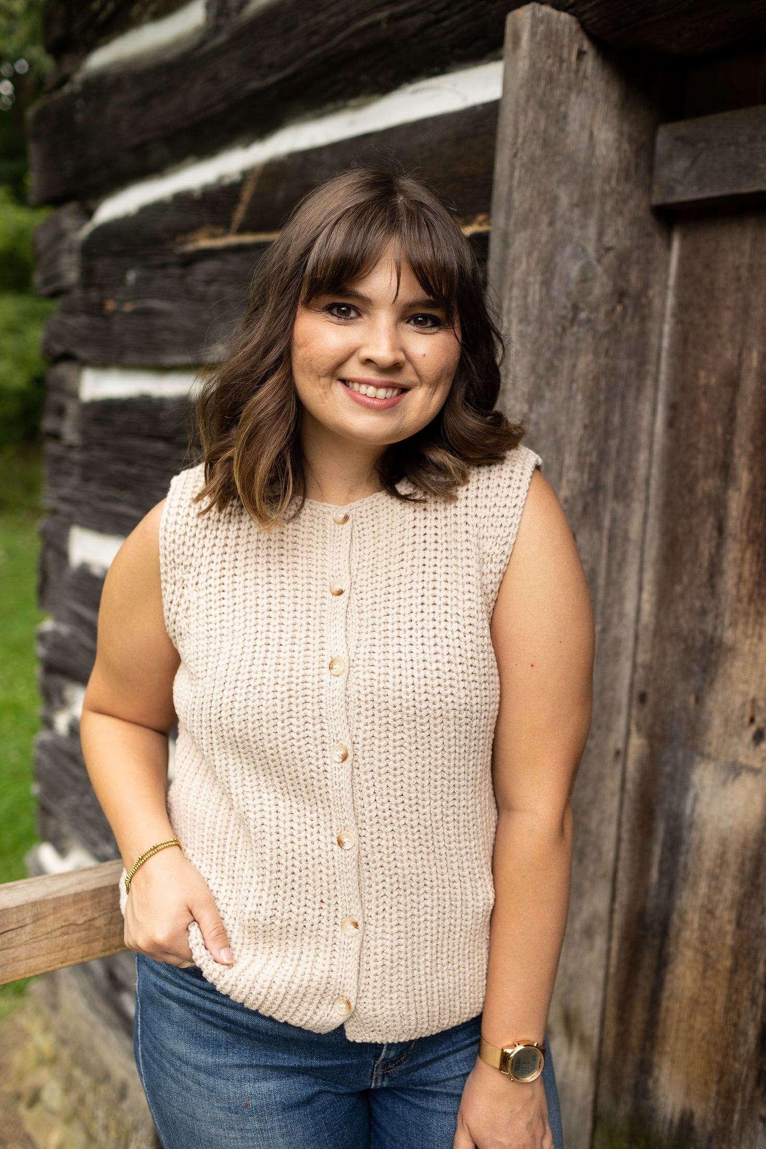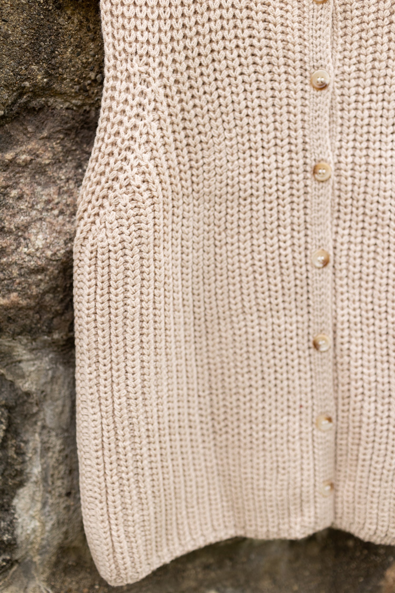 The Maeve vest carries the grace of something passed down, but made for now. Sturdy yet soft, her textured knit and delicate button-down front give her the feeling of a cardigan once worn in a grandmother’s kitchen — warm, present, wise. Pair her with a cotton dress or your favorite skirt and boots — she lends instant timelessness to every outfit, like the final line in a well-loved poem.