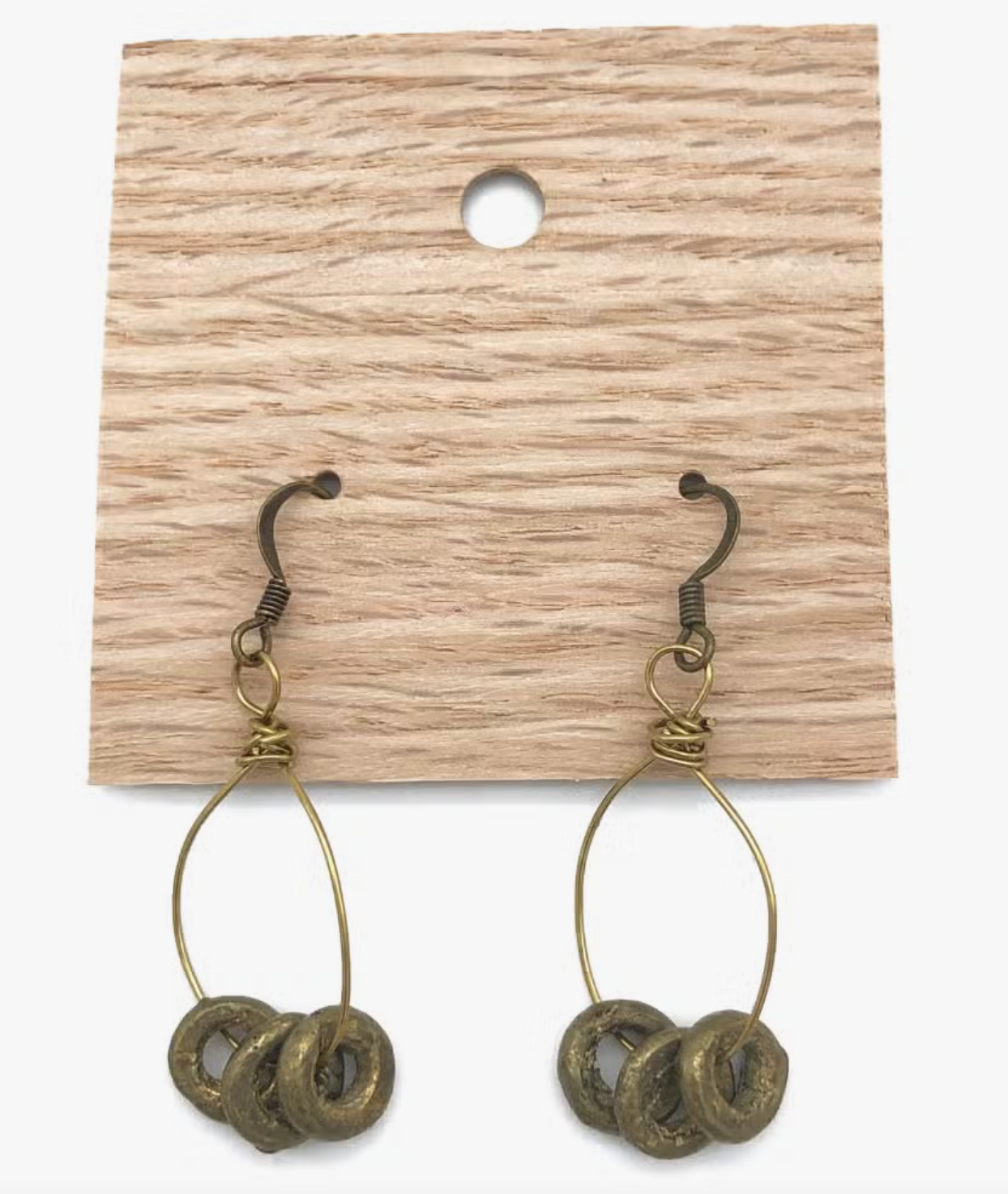Simple yet beautiful. These earrings features recycled brass bullet beads from Ghana. - Handmade in Minnesota
