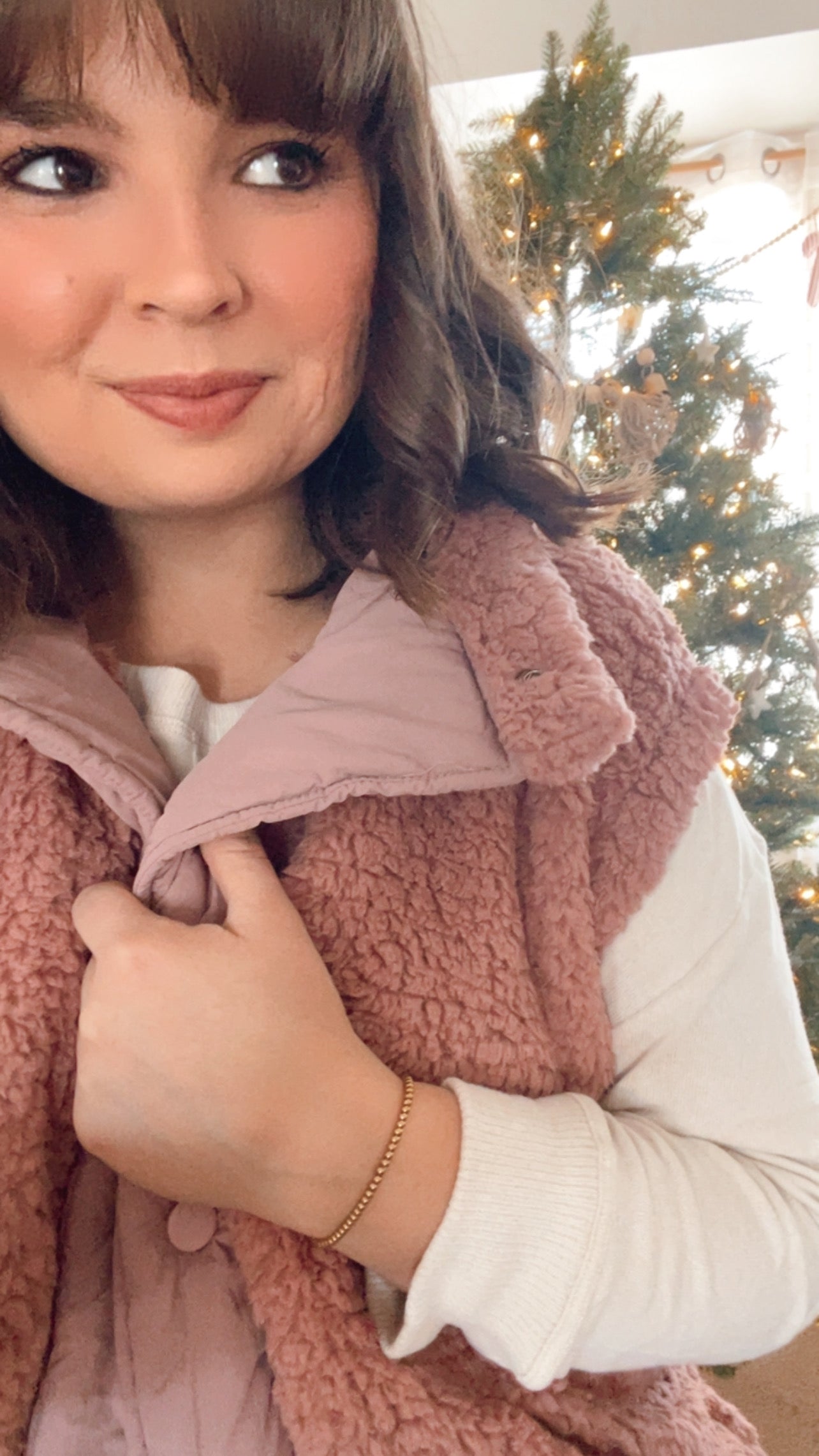 A layer made for lingering moments. The Warmth to Wander Vest brings together soft sherpa texture and a gently structured fit, creating a piece that feels both cozy and put-together. Lightweight yet warm, it’s the vest you’ll reach for on slow mornings, quick coffee runs, and every in-between moment of the season. Front pockets add function; the plush feel adds comfort in all the right ways.